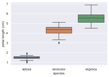 _ = plt.ylabel("petal length (cm)")