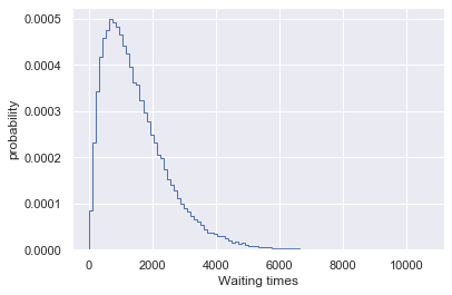 # Draw samples of waiting times: waiting_times