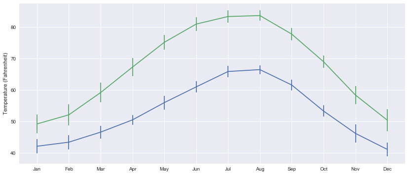 ax.set_ylabel('Temperature (Fahrenheit)')