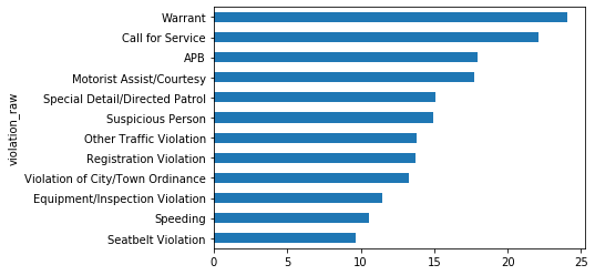 - Finally, we’ll add violation type as a second factor in the analysis, to see if that accounts for any differences in the arrest rate.